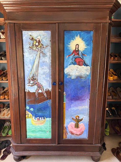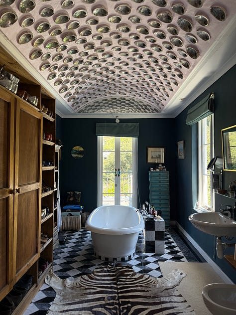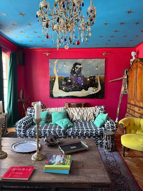 Sometimes you step into a home and realize that every inch of it is the expression of the person who lives there. Hand-painted tiles in the kitchen. Even the fridge is painted. The ceilings. Every detail the result of an intentional decision.